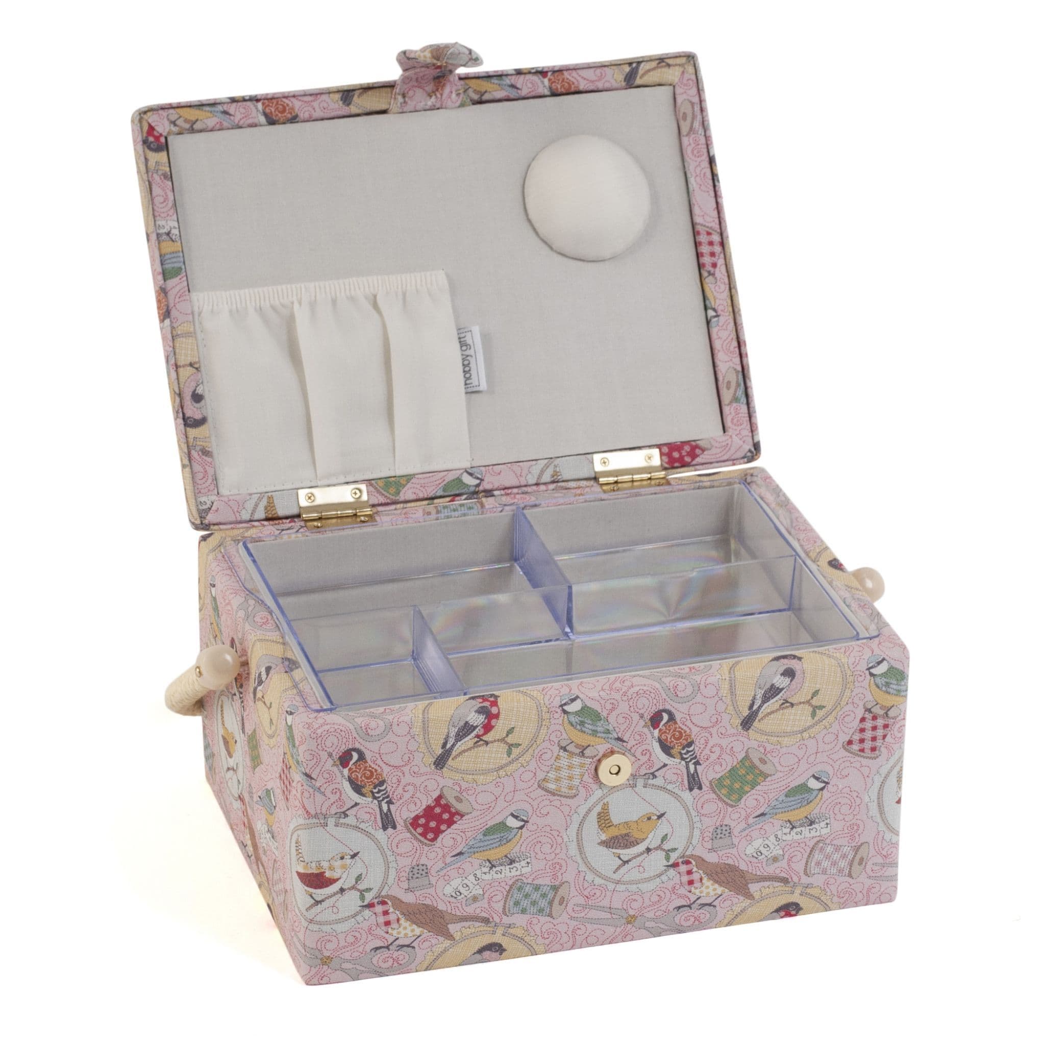 Sewing Boxes/Plastic Storage Boxes Home / Haberdashery Supplies / Sewing Boxes/Plastic Storage Boxes / Hobby Gift Sewing Box - Birds on Bobbin Hobby Gift Sewing Box - Birds on Bobbin Hobby Gift Sewing Box - Birds on Bobbin £19.99 In Stock: 1 You Will Earn 19 points with this purchase Free Delivery on orders over £25 Need a hand? Call Us Order before 2PM for same day dispatch Add to your Wish List Description Medium-sized sewing box covered in 100% cotton fabric in a Birds on Bobbin print. Faux raffia cord handle. Hard plastic internal tray with compartments for sewing accessories. Spot clean only. Item size: (d/w/h) 18.5 x 25.5 x 14.5cm. Reviews Customer reviews No reviews left yet Write a review Sort byMost RecentTop Rated No reviews have been left for this product, be the first to leave a review Attributes GTIN: 5029784905641 Brand: Hobby Gift Product Code: 5029784905641