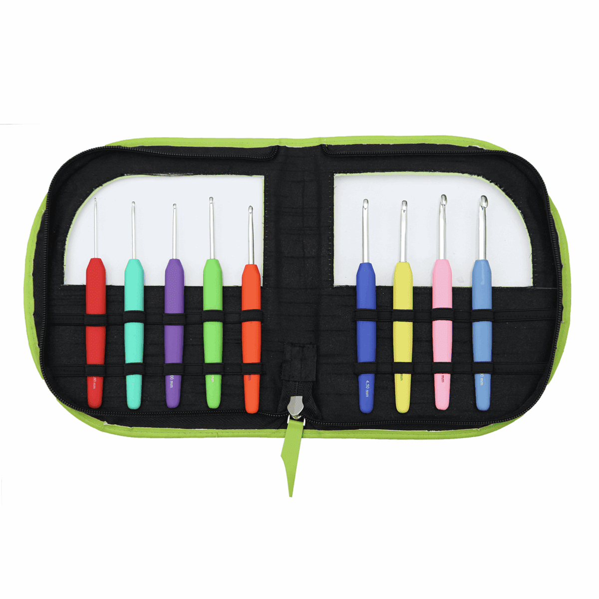 Crochet Hook Sets Home / Knitting Wool and Yarns / Knitting Needles and Accessories / Crochet Hooks / Crochet Hook Sets / KnitPro Waves Aluminium Crochet Hook Set Green (2.0 - 6.0 mm) KnitPro Waves Aluminium Crochet Hook Set Green (2.0 - 6.0 mm) KnitPro Waves Aluminium Crochet Hook Set Green (2.0 - 6.0 mm) £27.00 In Stock: 0 You Will Earn 27 points with this purchase Free Delivery on orders over £25 Need a hand? Call Us Order before 2PM for same day dispatch Sorry this item is out of stock Add to your Wish List Description Set of smooth aluminium crochet hooks with colourful soft grip handles, unique to size, stored in a fluorescent green carry case. Faux leather material, with a clear vinyl window and zip fastening. Contains sizes: 2, 2.5, 3, 3.5,4, 4.5, 5, 5.5 & 6mm. Length: 15cm. Reviews Customer reviews No reviews left yet Write a review Sort byMost RecentTop Rated No reviews have been left for this product, be the first to leave a review Attributes GTIN: 8904086258664 Brand: KnitPro Product Code: 8904086258664